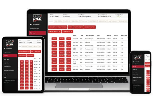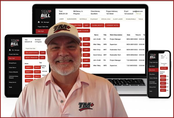 Created by Greg Dillon, the industry's T&M Subject Matter Expert, and the founder of T&M Pro—the most widely adopted T&M platform in North America—TM+ Suite is the result of over four decades of field experience and software innovation, engineered to meet the evolving needs of today’s restoration professionals.